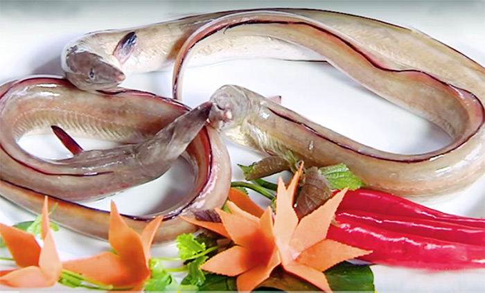 Tới Quảng Ninh, đi chợ hải sản ắt hẳn du khách sẽ gặp loại cá này. Cá nhạc thoạt nhìn giống con rắn hoặc lươn, “dữ tướng” với bộ răng dày, thân dài 50-60cm. Theo anh Bùi Tống Cường, một ngư dân có thâm niên đánh bắt cá trên Vịnh Hạ Long, cho biết: Đây là giống cá biển khá đặc biệt, thuộc loài cá da trơn, môi trường sống ngoài khơi, dưới tầng nước sâu. Cá không thể nuôi, thịt dai, rất thích hợp làm món chả, một đặc sản vốn rất nổi tiếng tại Hạ Long.
