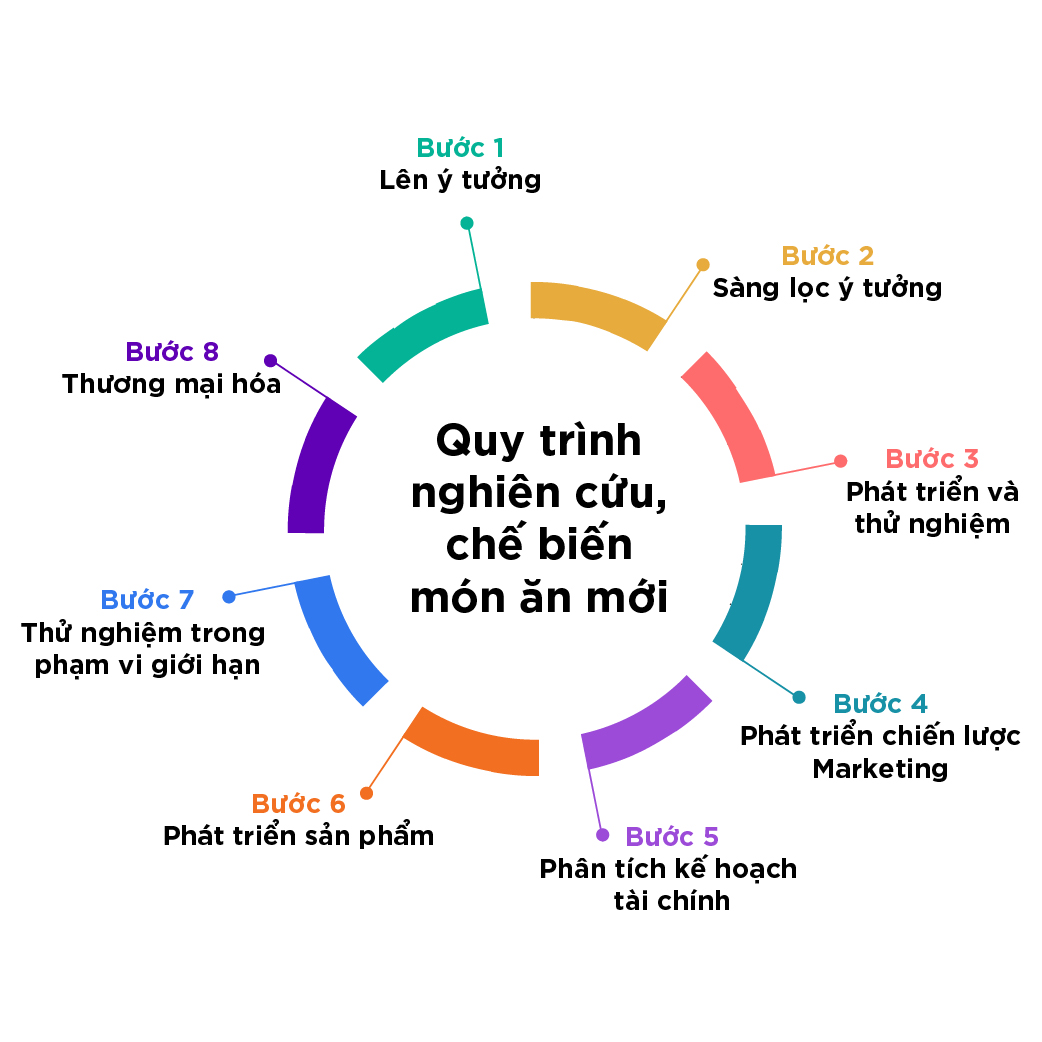 7. Ra mắt thị trường: Bước cuối cùng của quy trình phát triển sản phẩm thực phẩm mới là thương mại hóa sản phẩm và phân phối ra thị trường. Dựa trên thông tin thu thập được trong quá trình tiếp thị thử nghiệm, quản lý nhà hàng/nhà chế biến có thể quyết định: